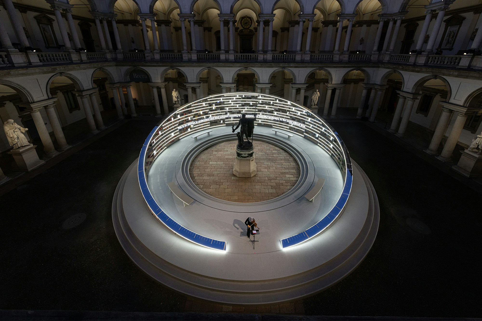 Treatment was invited to collaborate with artist and designer Es Devlin on Library of Light, a Salone installation in partnership with the Pinacoteca di Brera.